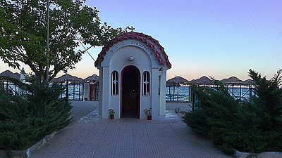 A központi résznek is kikiáltott templom Paralia "közepe". Ha ezt megtaláljuk eljutottunk a partra és biztosan nem tévedünk el.